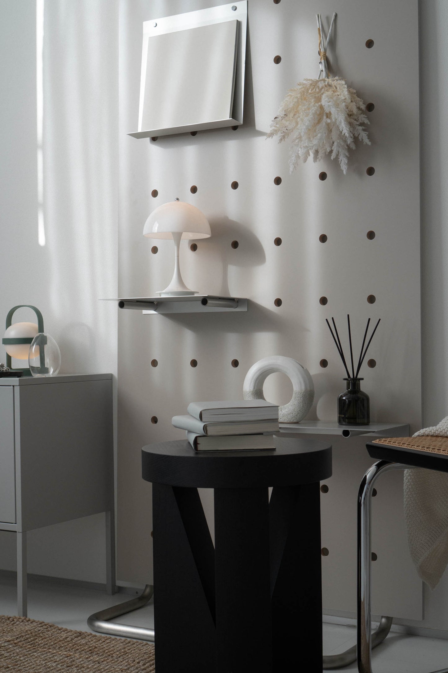 壁に穴をあけないから、賃貸や壁材の制約があっても導入できます。造作をしなくても、部屋の余白に“飾る場所”をつくれる。置き場所の移動もかんたんで、模様替えや暮らしの変化に柔軟に寄り添います。
