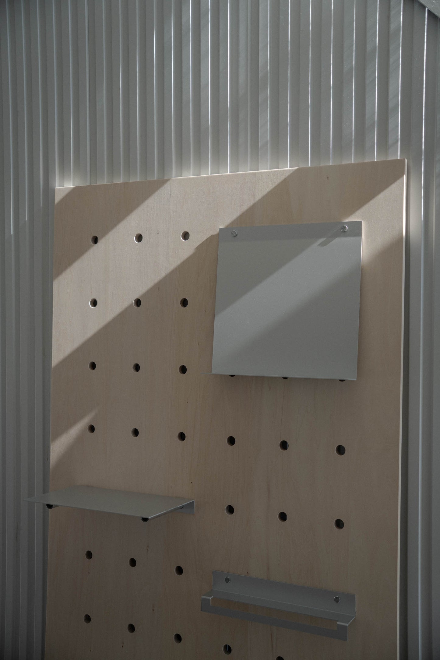 光によって青にもグレーにも見える深みのある色。